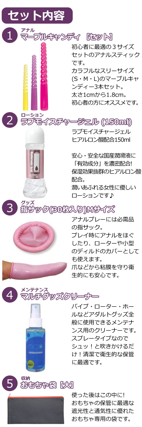 「種類が多すぎてどれを選べばいいかわからない」との声にお応えして生まれたアナル入門用お得セットです。