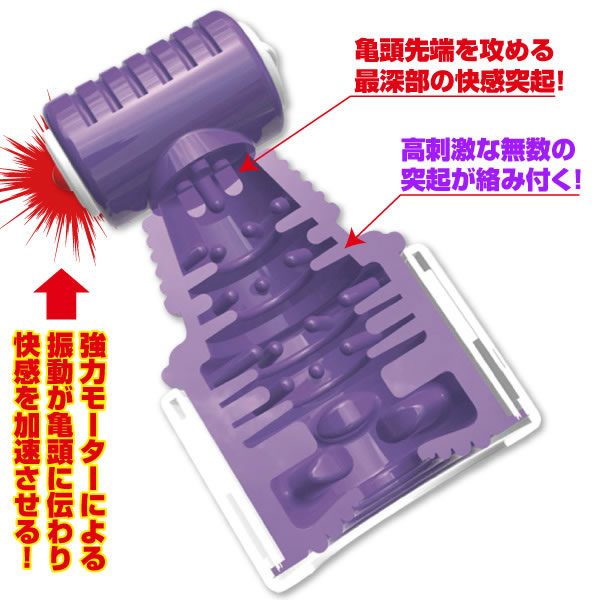 先端に搭載された強力ローターが振動して亀頭を一気に攻めまくる。