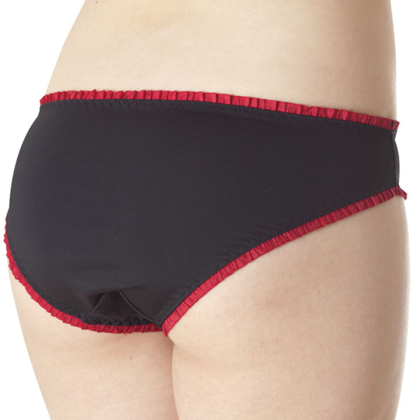 ブラックカラーショーツに、アクセントのあるレッドカラーフリルをプラスすることで、特別な時間を演出します。