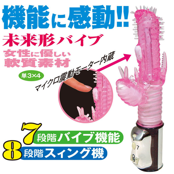 ポルチオ性感刺激型バイブとして人気の「ポルチオ7」ですが、早くもニューバージョンが追加されました。ポルチオ性感を刺激する独特のヘッド形状と、無数のソフト突起。さらに、ヘッド部にモーターを備え、ポルチオ性感に直接震動を送り込み、激しく刺激して新性感帯を開発します。そして今回の改良で、Gスポット用の超マイクロバイブが本体のサオ部に追加で装着されました。しかも、これらのバイブの波動パターンは、なんと7種類!クリバイブにも突起を配し、クリトリス周辺をまんべんなく刺激します。スイングも8段階に調節でき、新開発のカートリッジ式電池BOXが導入された為、電池の取替えが数段も楽になりました。本体にはライトも内蔵しており、暗闇でも容易に操作可能。その上ボディには、あのヌーブラにも使用されているという、環境にも女性にも優しいエラストマー素材を使用。「切れない・ベトつかない・伸びーる」を実現しています。アナル刺激用の突起も追加され、まさに充実機能の全性感帯同時攻撃型「フル装備バイブレーター」となりました。ちなみに突起を除いた太さは3cm強となっておりますので、標準サイズのバイブレーターをご愛用の方でも容易に挿入できます。