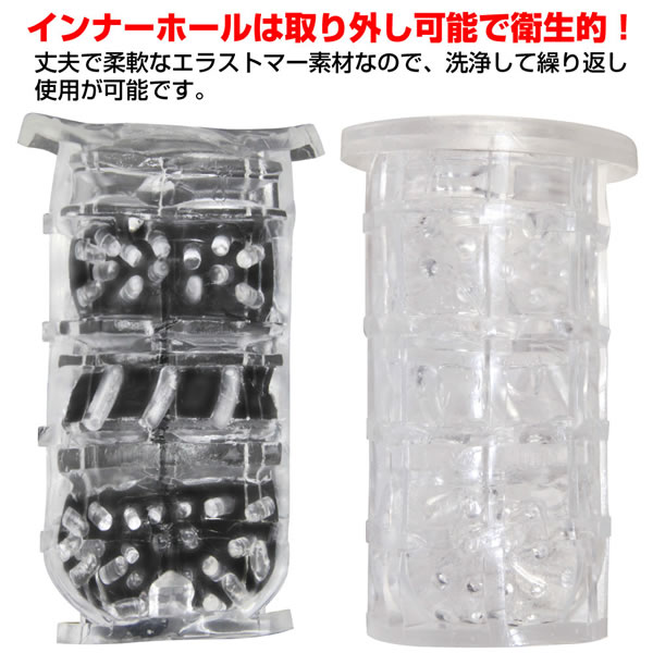 取り外し可能な内部ホールは回転運動と相性の良い、無数のヒダヒダが絡み付く快感構造。