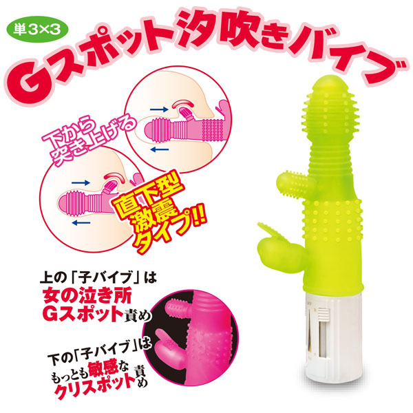 クリバイブの上にある見慣れない子機は、なんと、膣内に挿入して直接Gスポットを刺激する、超小型のマイクロモーターを内蔵しています。しかも、バイブ本体の先端(カリ)部分にもバイブレーション機能を内蔵。つまり、【クリ・Gスポ・膣の奥】の3つの性感を、贅沢にも3つのバイブレーションで刺激してしまう商品なのです。もちろん、バイブ本体にはスイング機能も付いておりますので、どんな女性にも最高の快感を与えてくれる、究極の万能型バイブとも言えそうです。