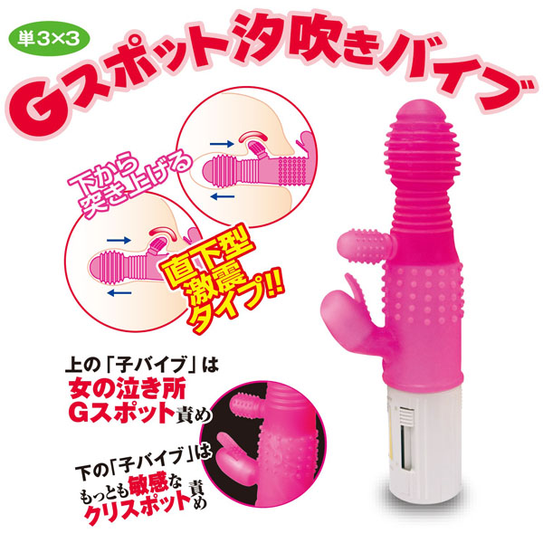 クリバイブの上にある見慣れない子機は、なんと、膣内に挿入して直接Gスポットを刺激する、超小型のマイクロモーターを内蔵しています。しかも、バイブ本体の先端(カリ)部分にもバイブレーション機能を内蔵。つまり、【クリ・Gスポ・膣の奥】の3つの性感を、贅沢にも3つのバイブレーションで刺激してしまう商品なのです。もちろん、バイブ本体にはスイング機能も付いておりますので、どんな女性にも最高の快感を与えてくれる、究極の万能型バイブとも言えそうです。