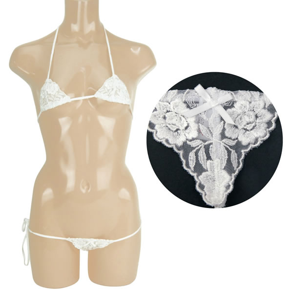 美しい花柄刺繍の施されたチュールレースブラ&ショーツセット!