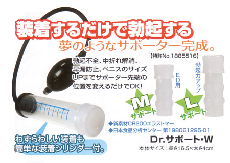 ED用のMサポーターと、勃起力のLサポーター、装着シリンダー、ローションのセットです。