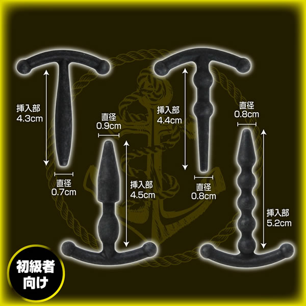 調教・尿○責め初級者向けのショートサイズプラグ4個セットです。
