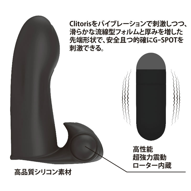 クリト〇スをバイブレーションで刺激しつつ、滑らかな流線型のフォルムがGスポットを同時に刺激するフィンガースリーブ!