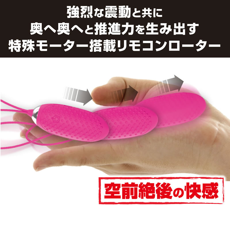強烈な振動と共に奥へ奥へと推進力を生み出す特殊モーター搭載の新感覚リモコンローター!