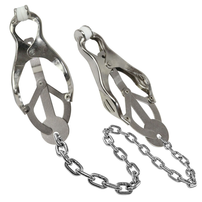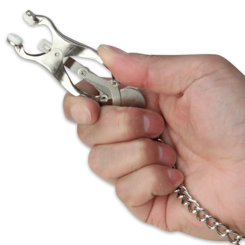 痛みはやがて快感へと変わる・・・乳首を攻めるチェーン付きニップルクリッパー!