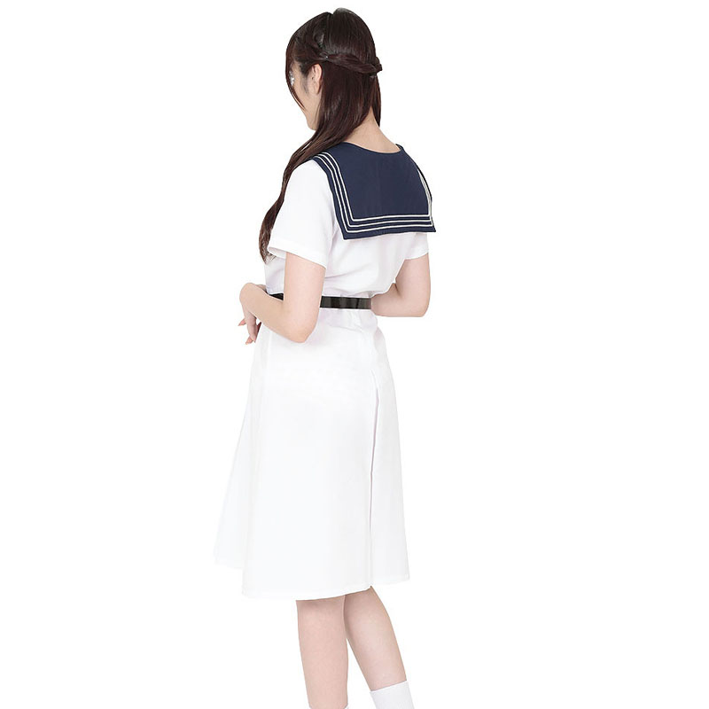 純白ボックススカートワンピに紺セーラーは可愛くて目立つからみんなの視線もクギづけ。
