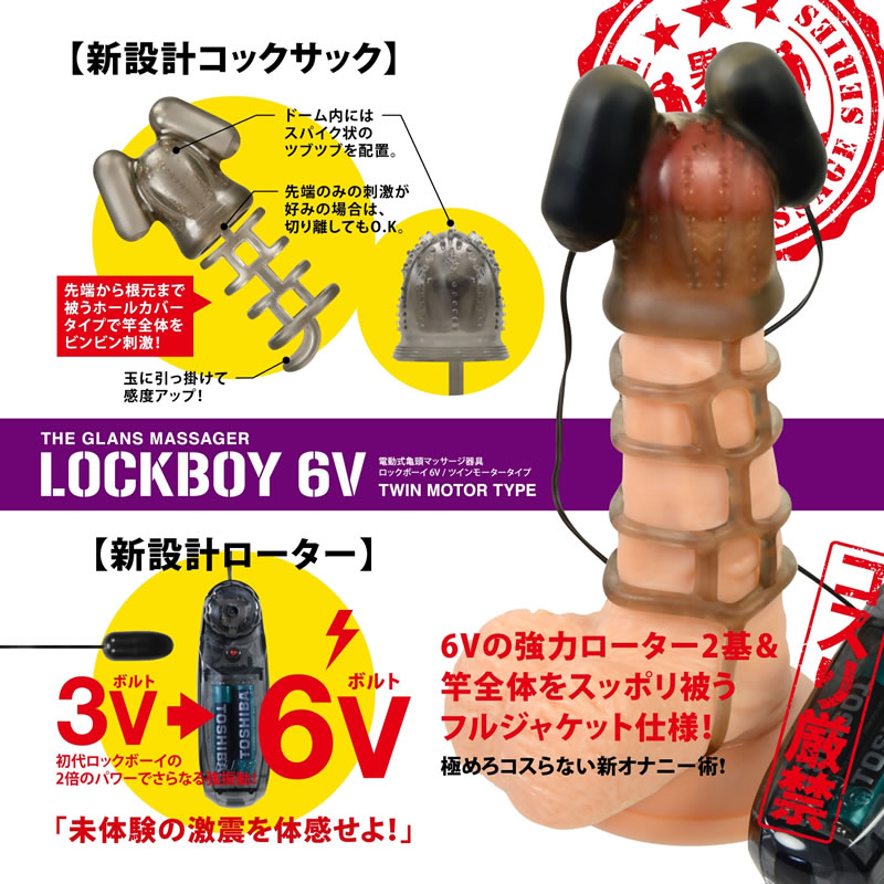 ローターが1基のシンプルな「男の亀頭シリーズ ロックボーイ6V シングルモータータイプ」も同時発売中!