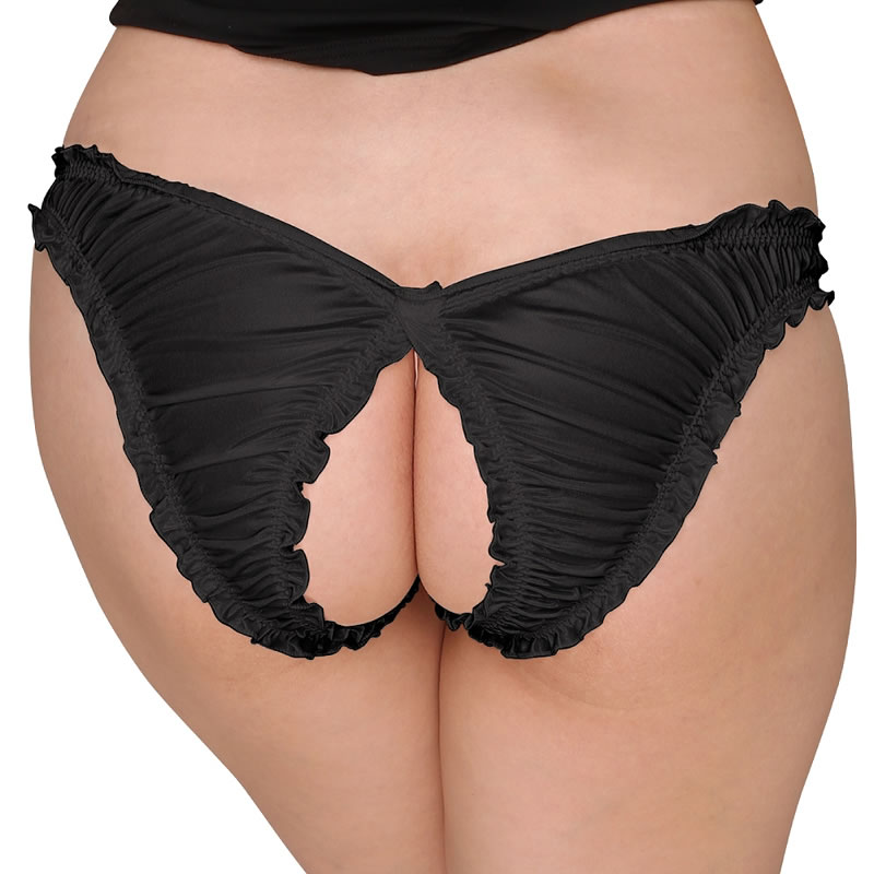 前からお尻の部分までパックリと開いたセクシーなオープン仕様で、着用したままの挿入も可能。
