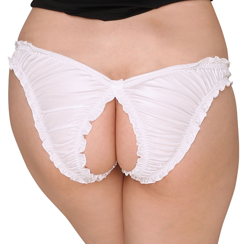 前からお尻の部分までパックリと開いたセクシーなオープン仕様で、着用したままの挿入も可能。