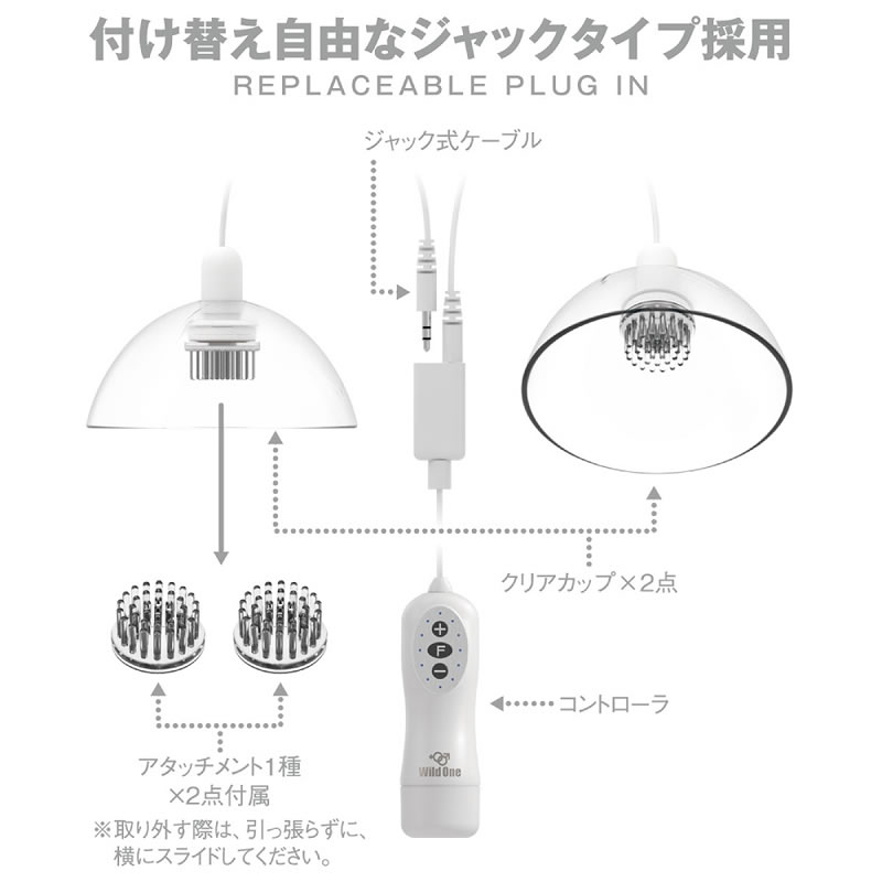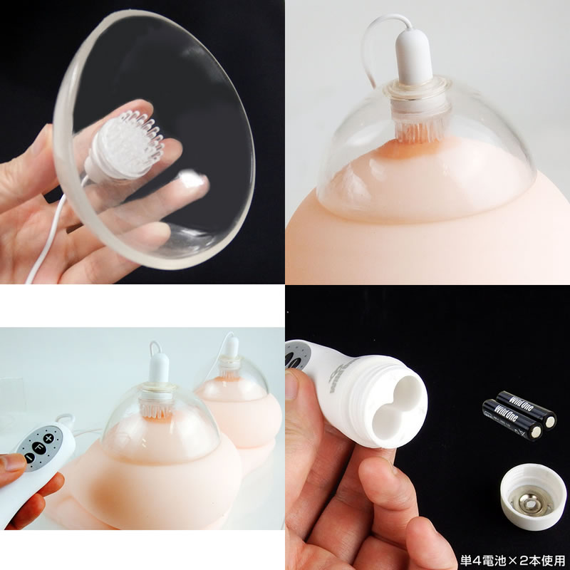 乳房に吸い付いてフィットする透明なソフトカップで固定して、先端ブラシの回転でピンポイント責め♪