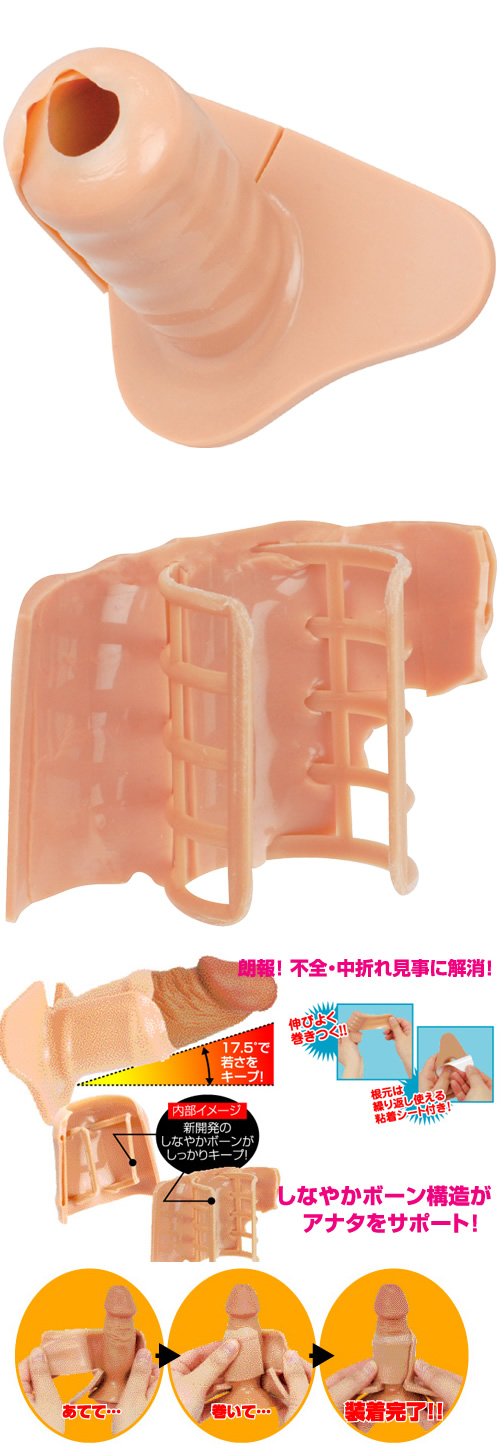 優れた伸縮性を締め付け感で。理想のとされる挿入角度17.5度をキープするように、内部に骨組みを内臓させた画期的な中折れサポートアイテム。