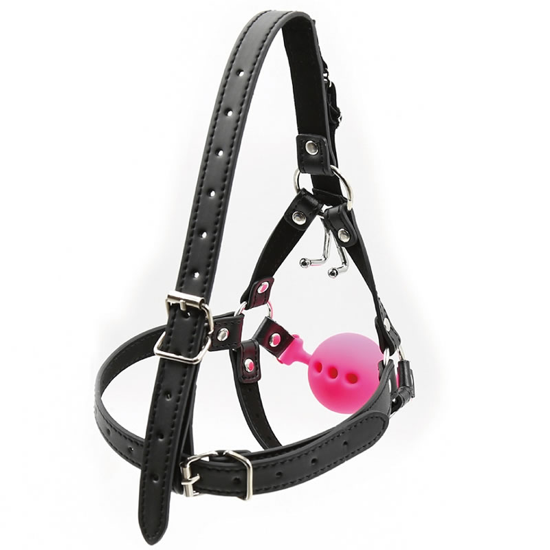 簡単な拘束感が味わえるSM入門商品として一番人気のボールギャグと熱烈なファンが存在する鼻責め、鼻孔が上に引っ張られる形で装着する鼻フックを一体化しました。