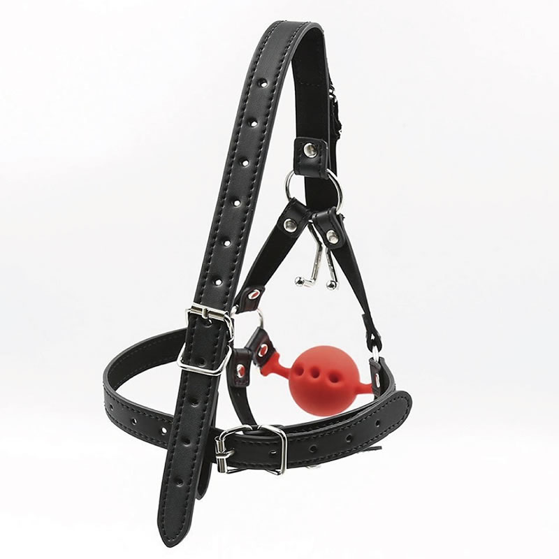 簡単な拘束感が味わえるSM入門商品として一番人気のボールギャグと熱烈なファンが存在する鼻責め、鼻孔が上に引っ張られる形で装着する鼻フックを一体化しました。