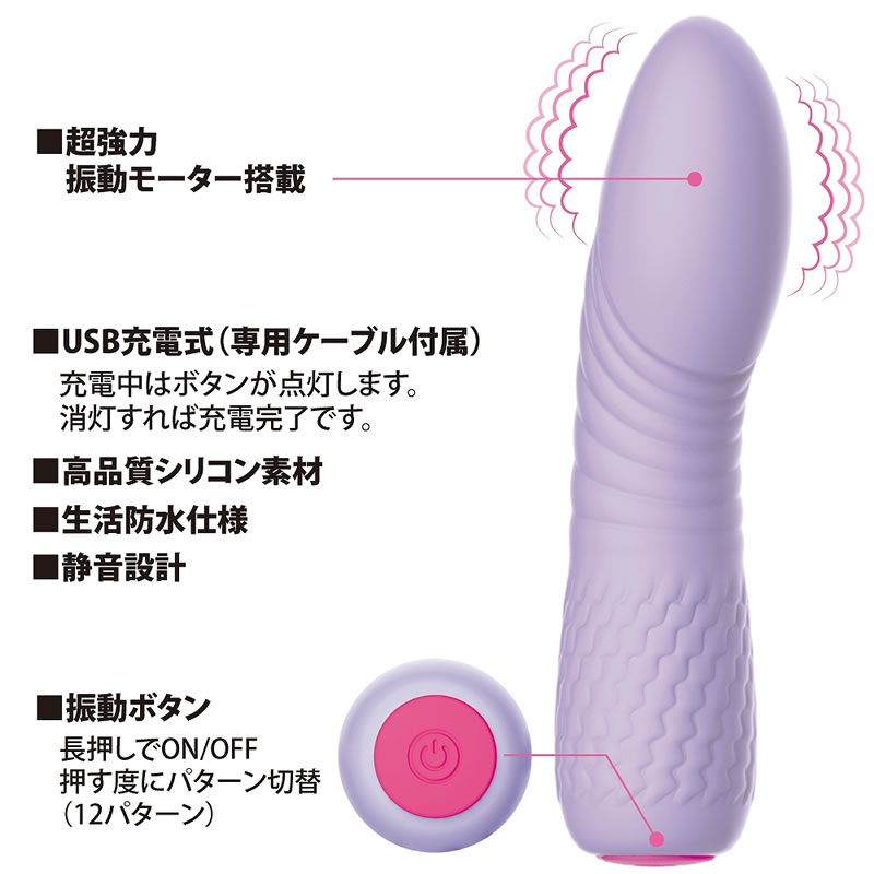しっとりと柔らかな最高品質のシリコンボディは、押し当てによるピンポイント刺激、挿入によるGスポット責めどちらにも適しています。