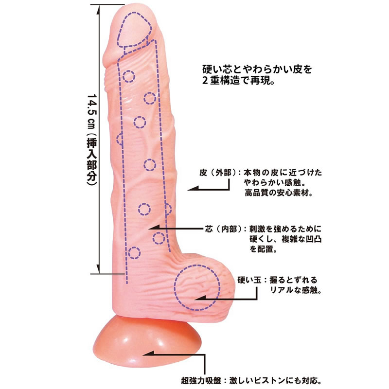 刺激を強めるために、硬く複雑な凹凸形状の芯を内蔵。