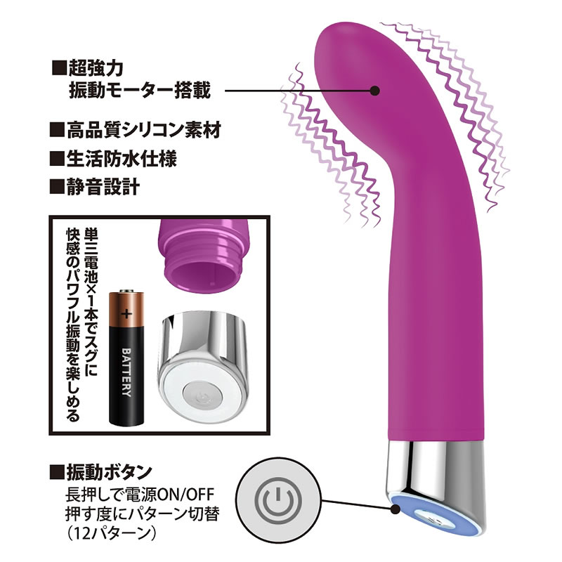 絶妙な先端の角度でGスポットを押し上げ、快感震動が直撃!