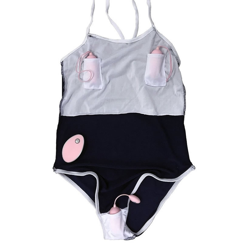 専用ポケットにローターを仕込んでハンズフリーで楽しめる新発想のスク水。