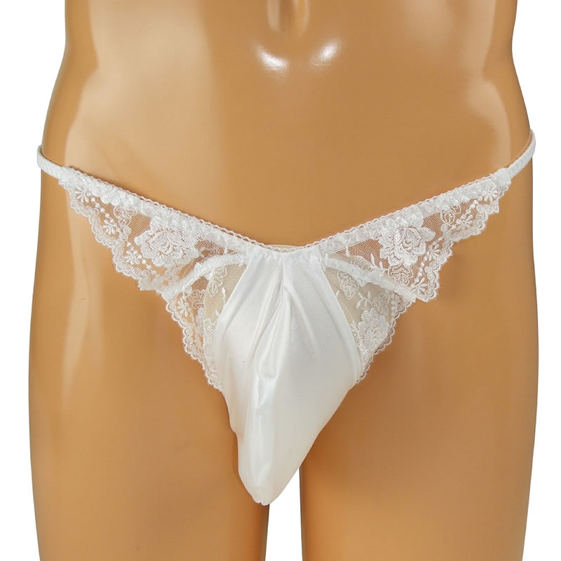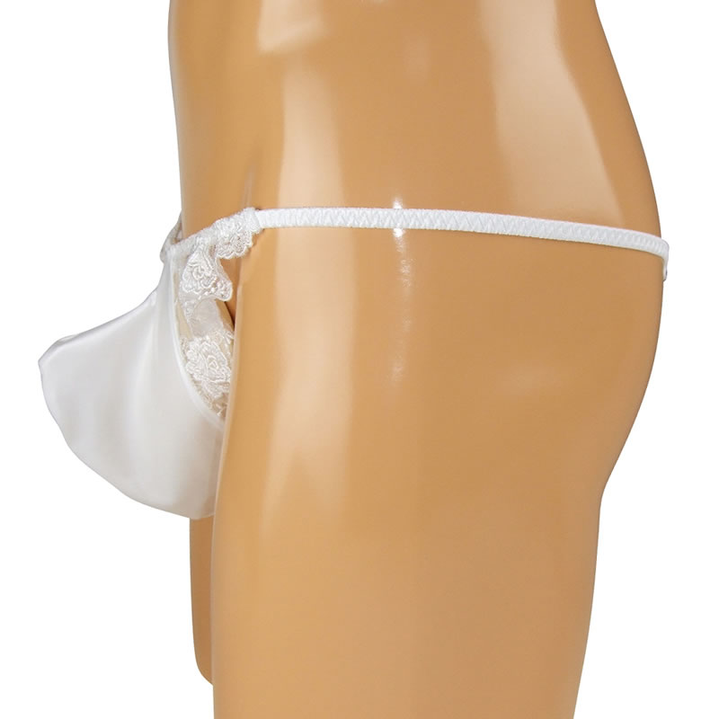 ★メンズ 光沢ストレッチレース装飾もっこりTバック ホワイト