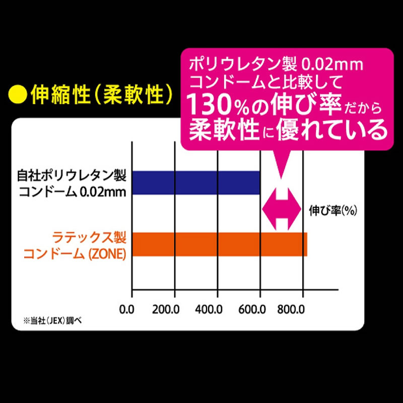 コンドーム使用時の違和感を解消する独自の新ゼリー技術により、生感覚を得られる極限の一体感を実現。