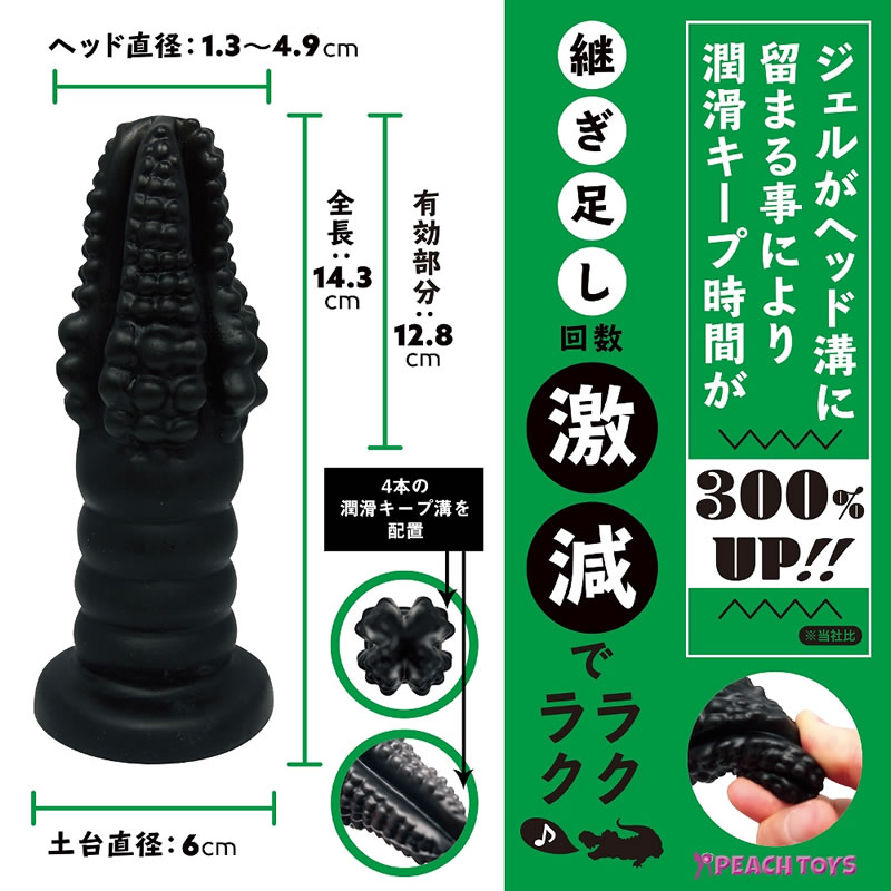 刺激的な突起群が浮き出たワニ頭型ディルド!