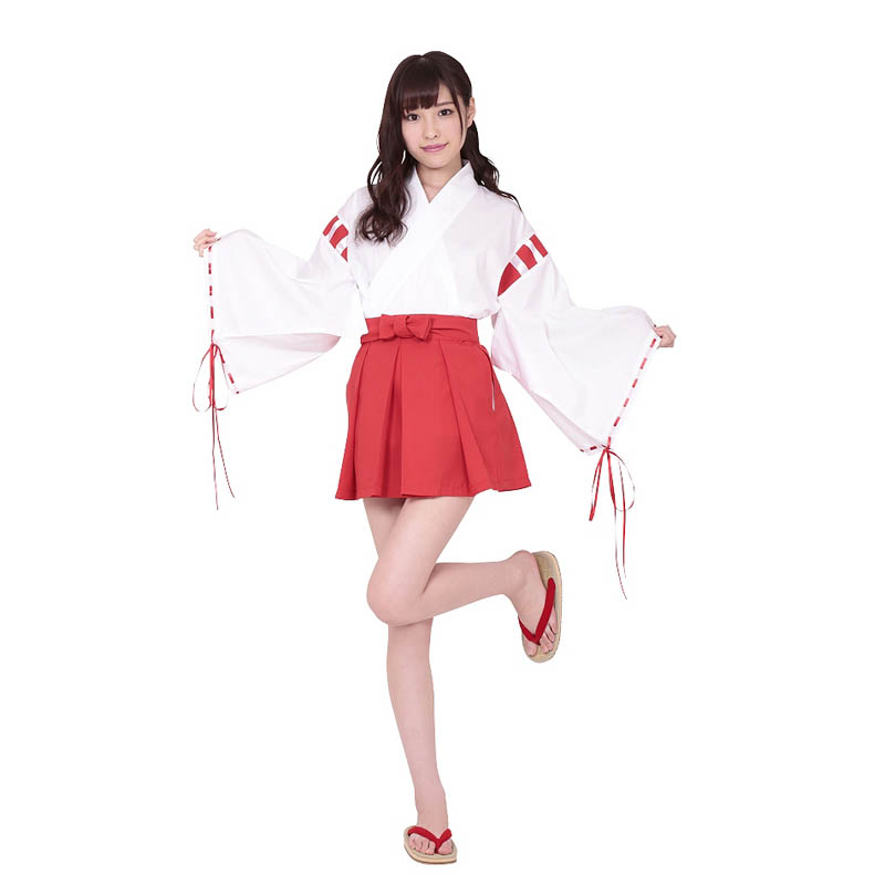 男の娘サイズのミニ巫女XLサイズコスチュームでいつもと違う自分に変身!