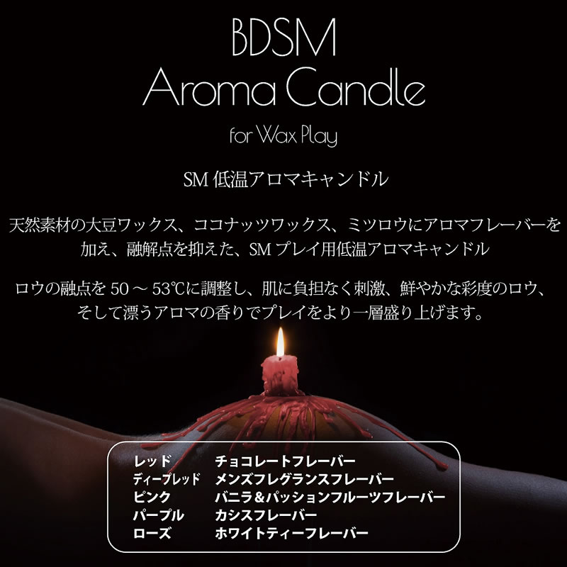 天然素材の大豆ワックス、ココナッツワックス、ミツロウにアロマフレーバーを加え、融解点を抑えたSMプレイ用低温アロマキャンドル!