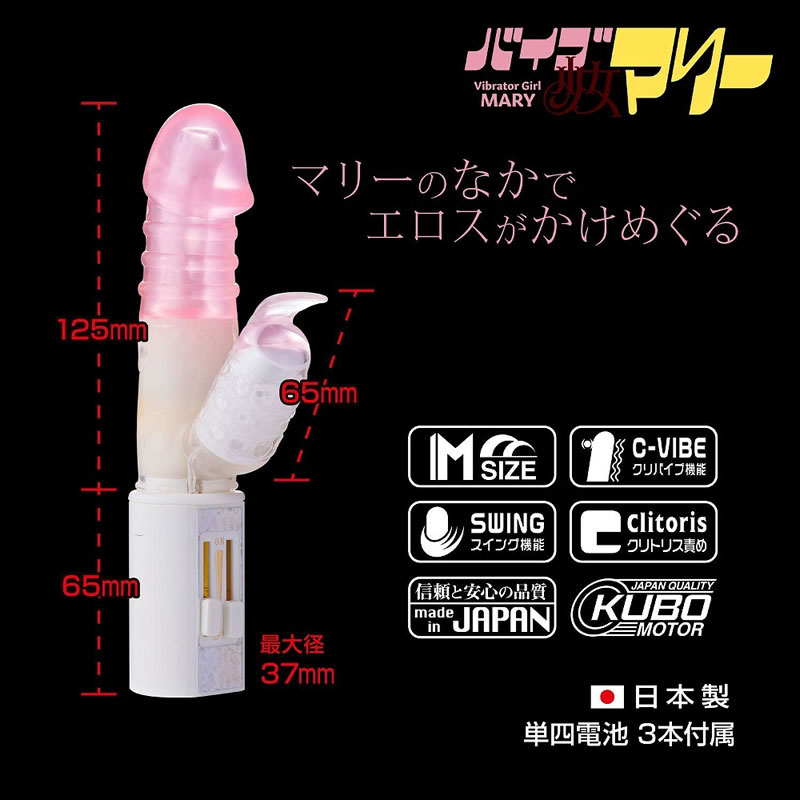 バイブ少女マリーはワイドな面でクリちゃんを責めるスイングバイブです。