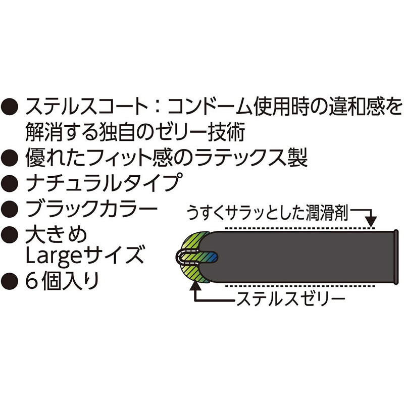 特徴:新開発ステルスゼリーを先端に塗布、優れたフィット感のラテックス製、大きめのLサイズ