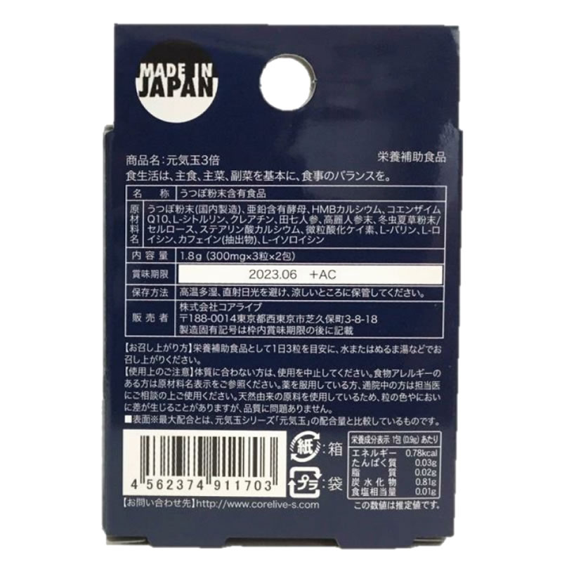 うつぼ粉末(国内製造)、亜鉛含有酵母、田七人参、高麗人参、冬虫夏草末、L-シトルリンなど漲る有効成分を黄金比率で配合。