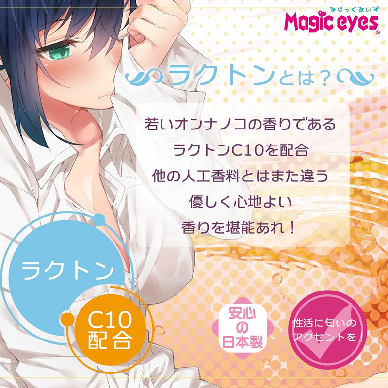 若いオンナノコの香りとされているラクトンC10を配合した、新しい性活に匂いのアクセントをもたらしてくれるローションです。