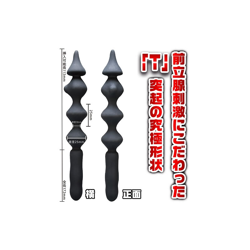 形状も挿入し易い先端と括約筋を悦楽させるパールに、前立腺に対して圧倒的な相性のT突起!!