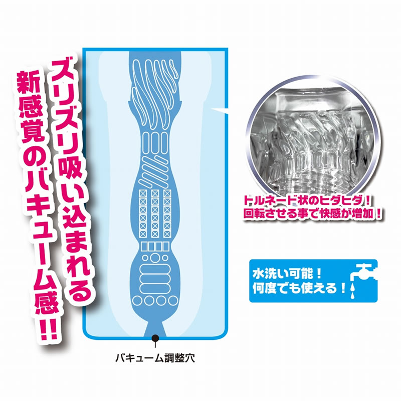 中身はクリスタルのような美しいホールでトルネードのヒダから始まり、回転させることで刺激が増加します。