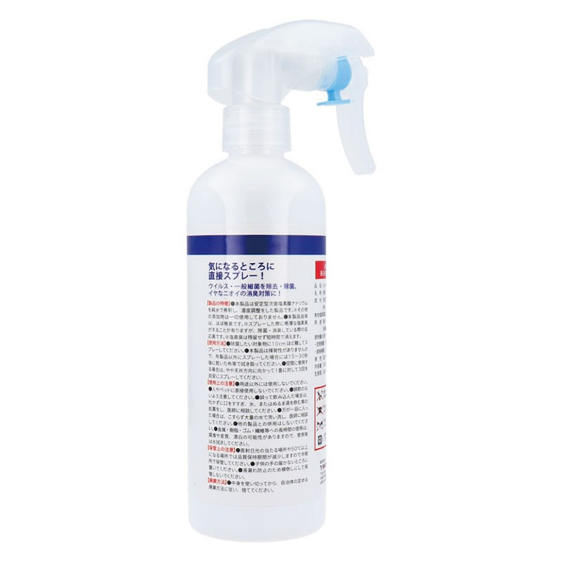 ●本製品は安定型次亜塩素酸ナトリウムを純水で希釈し、濃度調整をした製品です。※その他の添加物は一切使用しておりません。