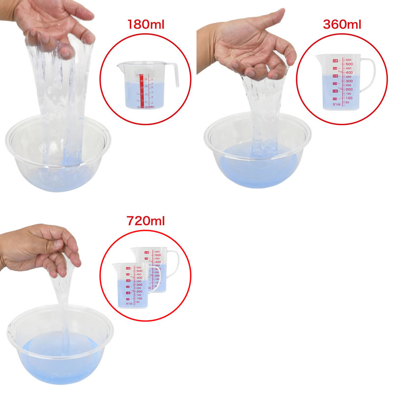 標準粘度なら約18リットル換算ですが、もっと薄めればさらに大量のローションがつくれるため、マットプレイなどでジャバジャバ使いたいシーンでも大活躍。バスタブのお湯に溶かせばローション風呂になりますし、「バススライム」のトロみを増やしたい時にも有効ですよ。