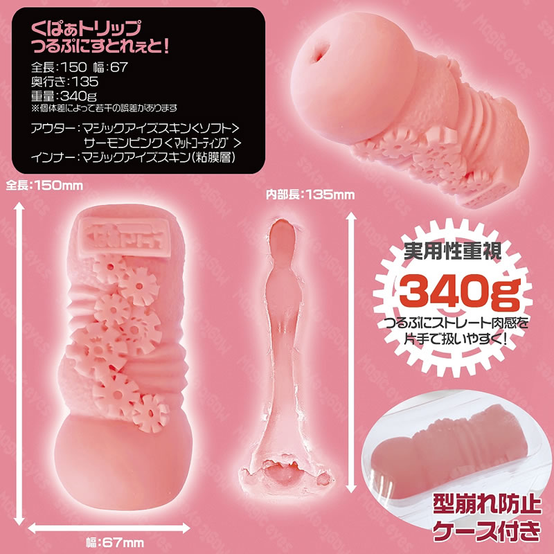 ローションが漏れにくく、侵入し易いくぱぁ構造と内部長135mmソフトなMagiceyesSkin(厚生労働省:食品衛生基準370号準拠素材)を採用していますので実用的な仕様になっております。