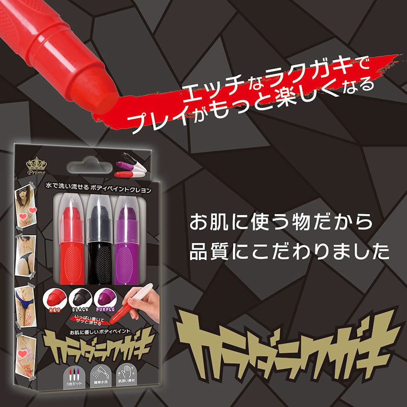 水で簡単に流して消せる、ボディペイントクレヨン「カラダラクガキ」がお得な3本セットになってリニューアル!