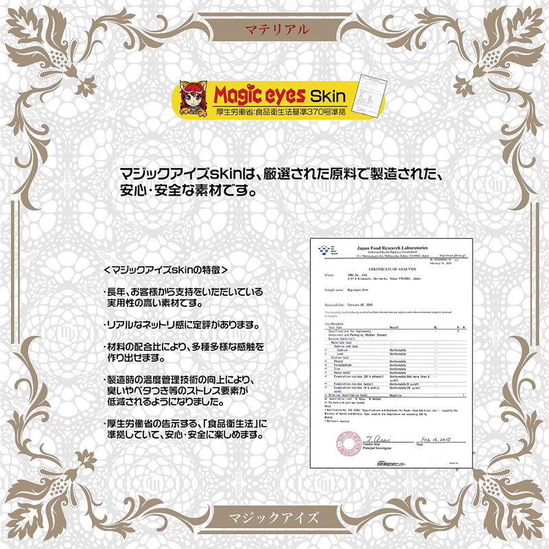 素材には厚生労働省:食品衛生法基準370号準拠したMagiceyesSkinを採用。