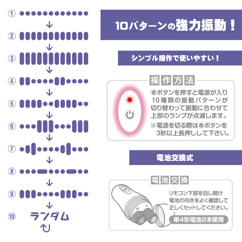 リモコン部は振動パターンにLEDランプが連動している為、暗い場所でも確認できます。