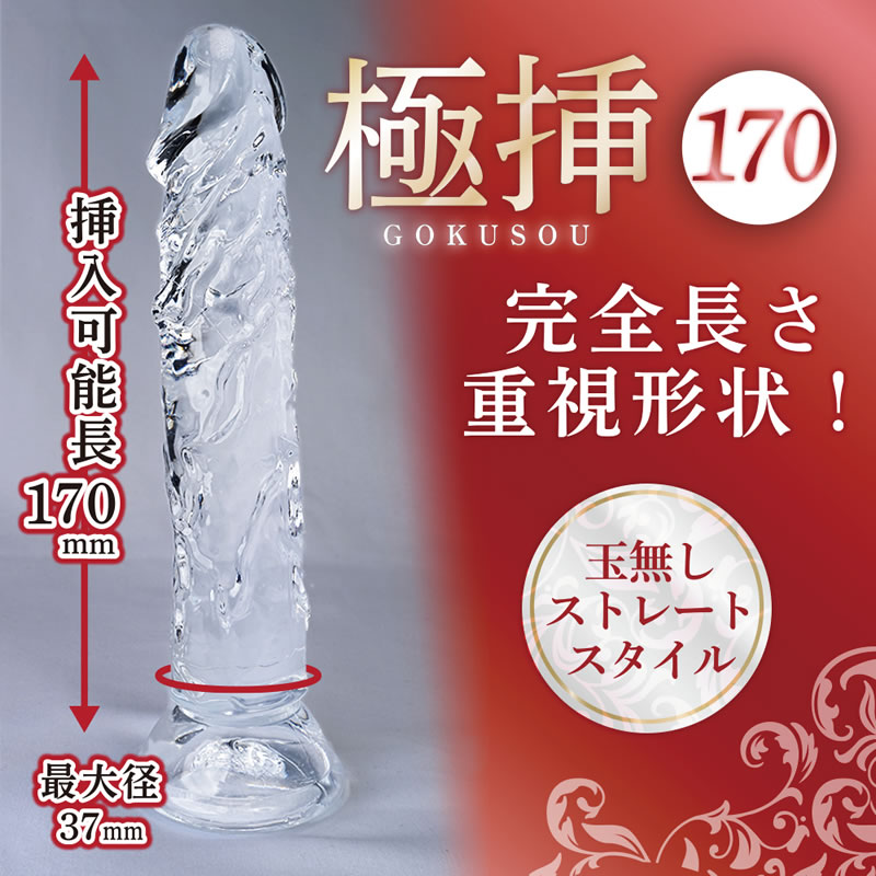 程よい質感とスタイリッシュなクリア素材、タマ無しストレート形状で絶妙の太さなのに挿入可能長170mmを実現!