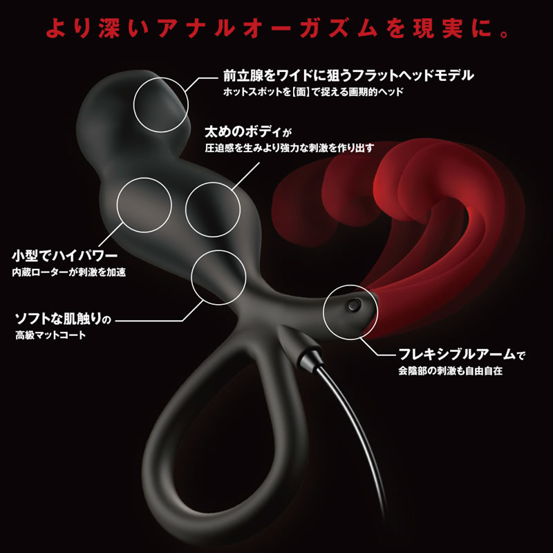 前立腺を刺激するために洗練されたフォルムが、悶絶のドライオーガズムをもたらします。