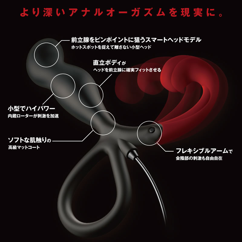 前立腺を刺激するために洗練されたフォルムが、悶絶のドライオーガズムをもたらします。