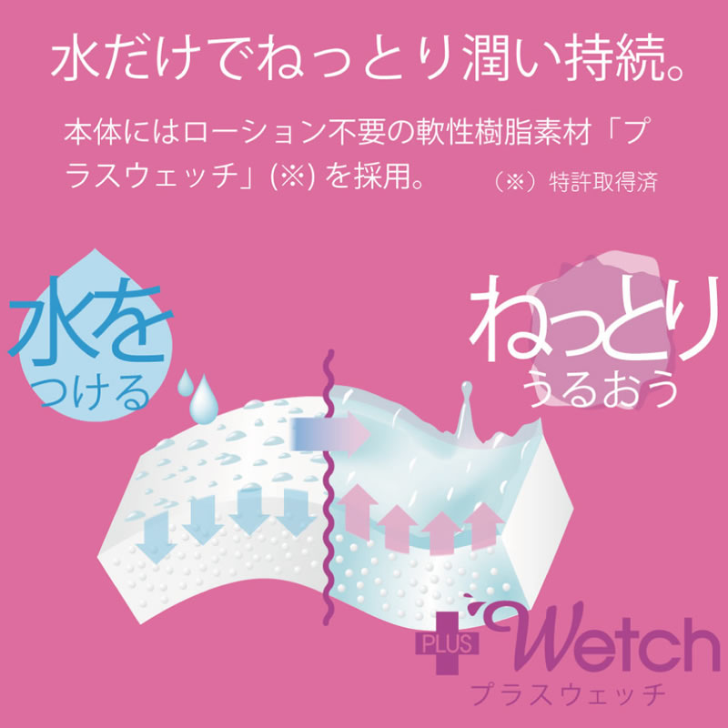 水をつjけて軽く擦ることで、内部に超ミクロサイズで閉じ込められた「潤いゼリー」が水に反応し、沁みだし、樹脂表面をねっとりと潤い包み込みます。