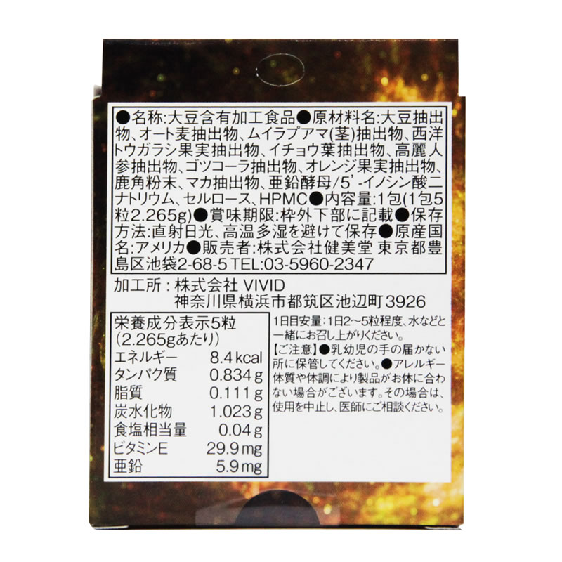 1日目安量:1日2~5粒程度、水などと一緒にお召し上がりください。