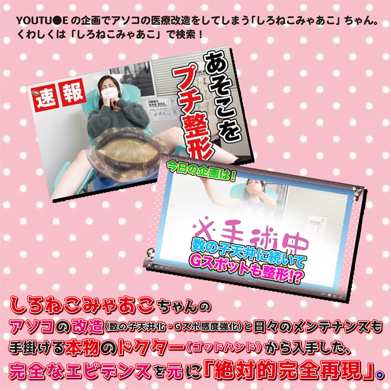 みゃあこちゃんのアソコの改造(数の子天井化)とメンテンナンスを担当する医師の先生からいただいたエビデンスを元に、内部の感触を完全再現。