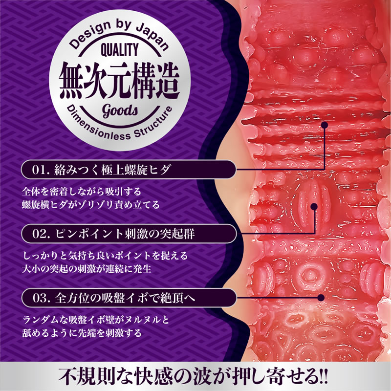 入口部から絡みつく極上螺旋ヒダ、突起群に覆われた中間部、全方位吸盤イボの最深部でフィニッシュ。