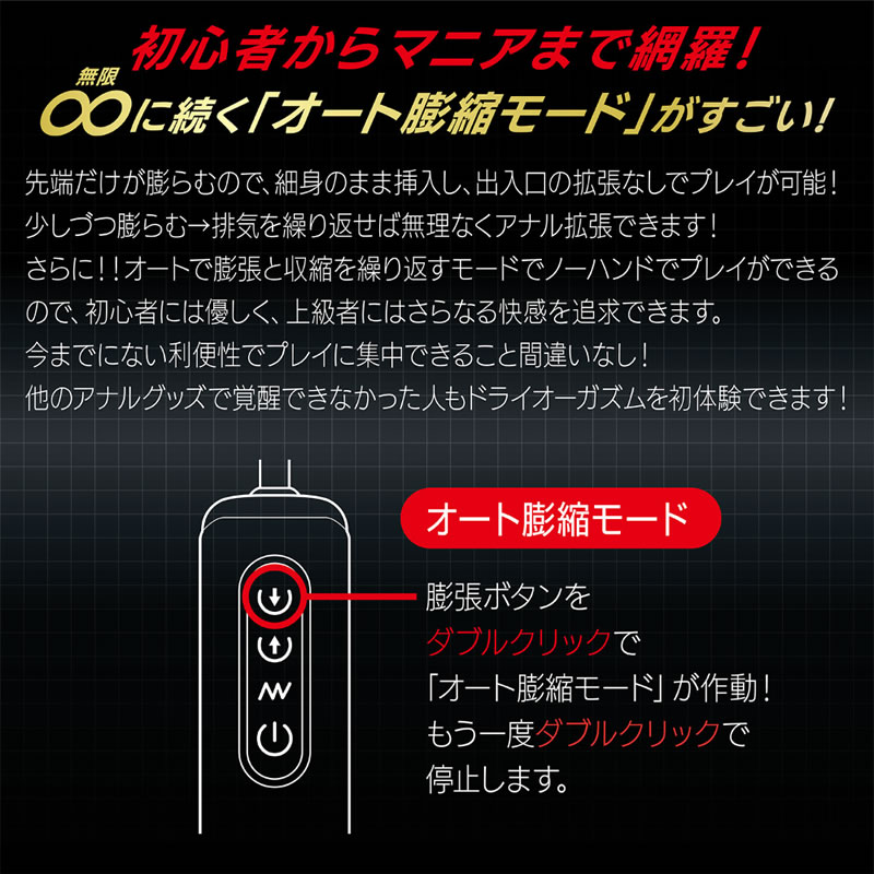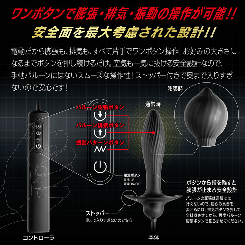 ワンボタンで膨らむ電動アナルバルーンが、前立腺をワイドに圧迫刺激!